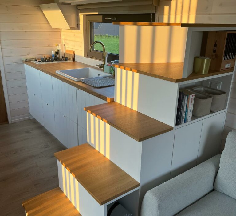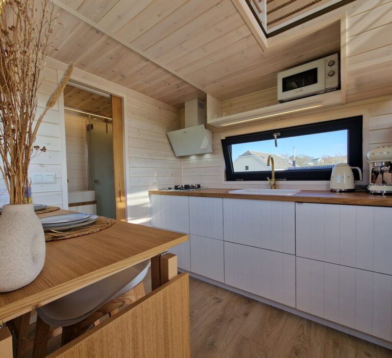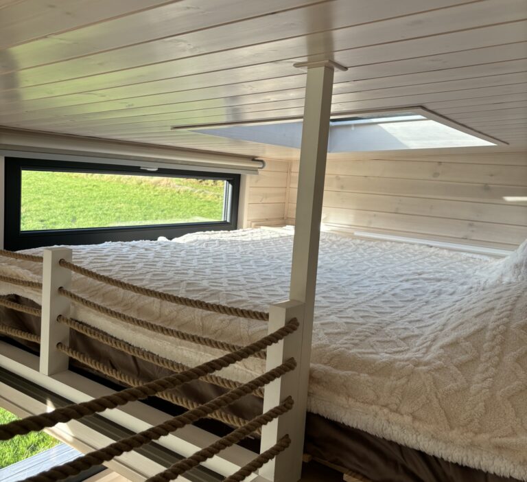 Nous avons vu des tiny houses il y a quelques années, ce petit espace aménagé de manière à avoir tout sous la main... cela nous plaisait vraiment. Le projet d’aménagement nous a mené vers quelque chose de léger, moderne et simple, avec une touche de luminosité dans notre belle région à découvrir au milieu de la verdure.